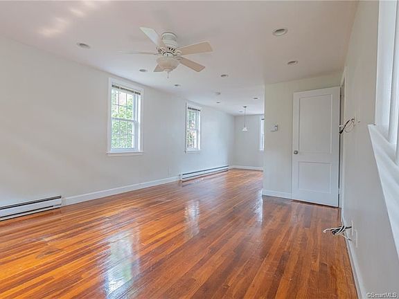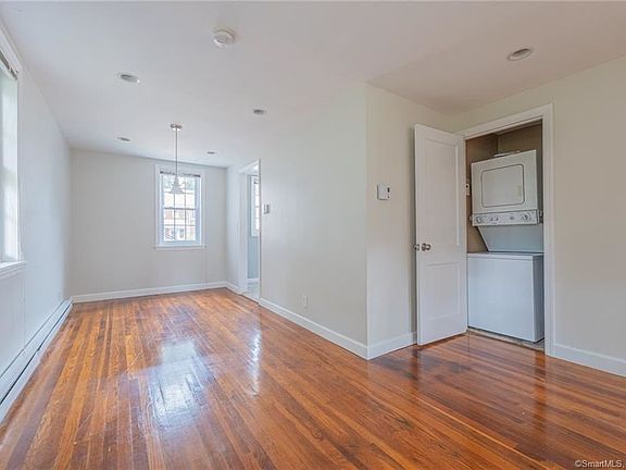 Move right into this light and bright updated end unit townhouse in excellent location near I-84 and all the conveniences. This brick townhouse faces courtyard and your assigned parking space is right at your back door. Updated kitchen with white cabinets, granite counter tops and stainless steel appliances, hardwood floors in living room and dining room, freshly painted throughout, recessed lighting added throughout, 3 ceiling fans added, Updated tiled bath, beautiful hardwood floors on second floor just refinished, walk up attic for storage, basement has private storage. Stackable washer/dryer located in unit in closet on main level.