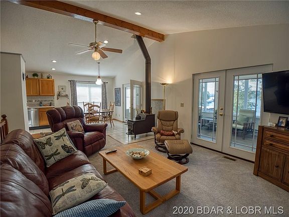 What a great Lake Front home on the Little Niangua. Cove location with a main channel view. Only 11 miles to Camdenton Square and in a wonderful subdivision. Want garage space?? Well this home has an attached over sized two car garage and a oversized two car detached garage with high walls and a tall ceiling if you want to put a car hoist in it. Two boat 10 x 24 boat slips with two #8,000 boat hoists in the community boat dock which is an easy walk from the home. A gently driveway with a lot of parking. This is a great home so don't wait and let someone else get it before you do.