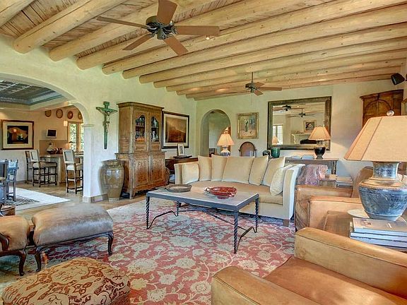 Come and experience serenity. This exquisite property offers a lush environment, and a home with impeccable construction and design. Enter into this wonderland through a very private front gate. A waterway meanders through the front yard with a pond and mature, tasteful landscaping. The home is glorious in both design and functionality. Warm and welcoming, the large kitchen has all of the modern conveniences. A formal dining room is open to the kitchen and living room area. The home has custom windows and doors throughout. Make sure to notice the wonderfully crafted window and door hardware. All of the three bedroom have amazing views of a verdant landscape. The 2.5 baths are elegant with very beautiful sandstone finishes. There is a wonderful outdoor kitchen with mesquite cabinetry and a large fireplace. Each outdoor space is tasteful and refined. You have many options for outdoor entertaining. A large detached garage is oversized and has 4 additional storage areas The iron gates on the property were each thoughtfully designed to match the outdoor walls which make this property so private and protected. Garden walls, water, mature landscaping, and a home that was created with incredible attention to detail make this a most special place to call home. Come and see the finest of homes in a very desirable location.