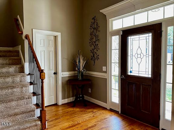 The most beautiful home awaits you. Sellers made many lasting memories here, and now this home is ready for you to make yours. Open floorplan with the perfect balance of spaciousness and separation. Gorgeous hardwoods and exquisite detailed trim. Downstairs Main Suite with dual walk-in shower & soaking tub makes a wonderful retreat after a long day, and there's plenty of room for everyone with additional bedrooms and large bonus rooms upstairs. Play basketball in the driveway and sip sweet tea on the covered front porch. Backyard ideal for outdoor entertaining or your own personal oasis with heated, in-ground, saltwater pool, patio and screened-in back porch. Easy access to Raleigh, the NC Coast and the mountains!