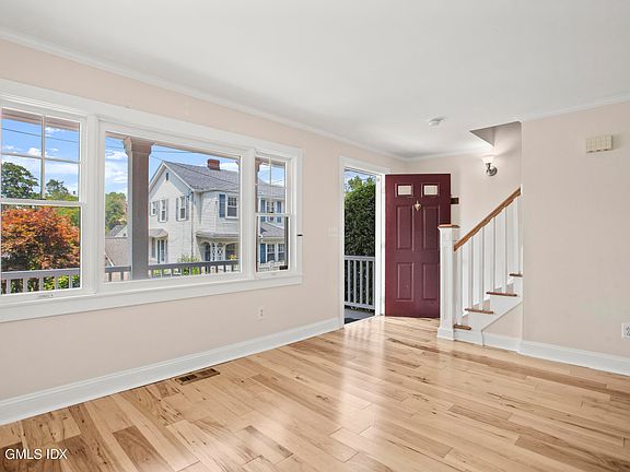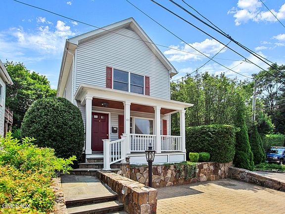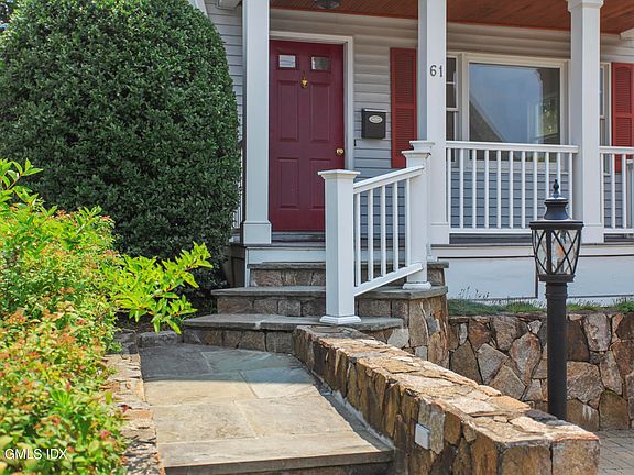 In-town, close to Greenwich Avenue, school, train. Classic front porch colonial with attractive, private back yard (enclosed by partial fencing plus privet hedging). Perfect kitchen/family room with sliding doors to terrace. Great master bedroom w/updated master bath, plus two more bedrooms and bath. Lower level unfinished but has well-lighted laundry area and plentiful storage.