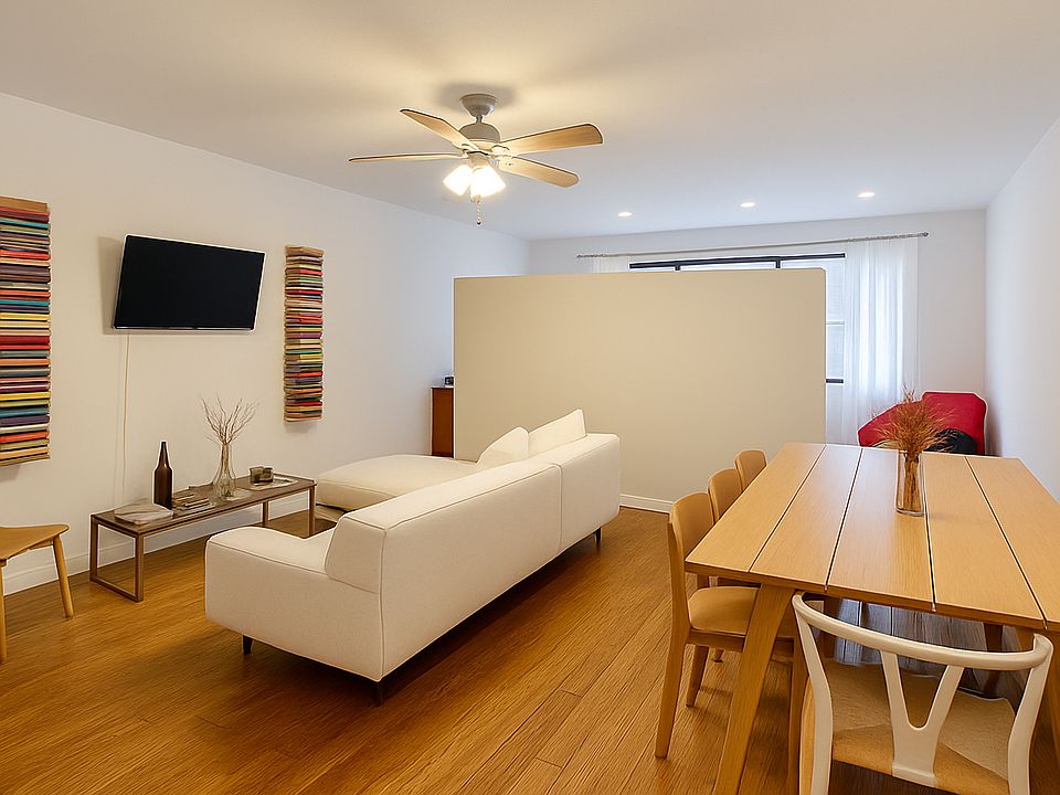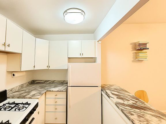 Available 09/15, board interview required. This loft-like studio has already been converted to a one bedroom, features an exceptional layout and has abundant storage. The open-concept kitchen features a breakfast bar and sleek white appliances, while the living room is large enough to accommodate both living and dining room furniture. The separate sleeping area can accommodate a king-sized bed with additional furniture. Recessed lighting, through-the-wall air conditioning, a contemporary white bathroom, and a large walk-in closet complete the picture. 61 Lexington Avenue, nestled on the border of Gramercy and Kips Bay, is an elevator building with a live-in superintendent, common laundry room, and video intercom. The following fees will apply: * 1st month rent and one month security deposit paid at lease signing * $250 Application Processing Fee * $250 move-in deposit (refundable) * $65 digital submission fee * All online fees subject to 5% app admin fee surcharge per Domecile.