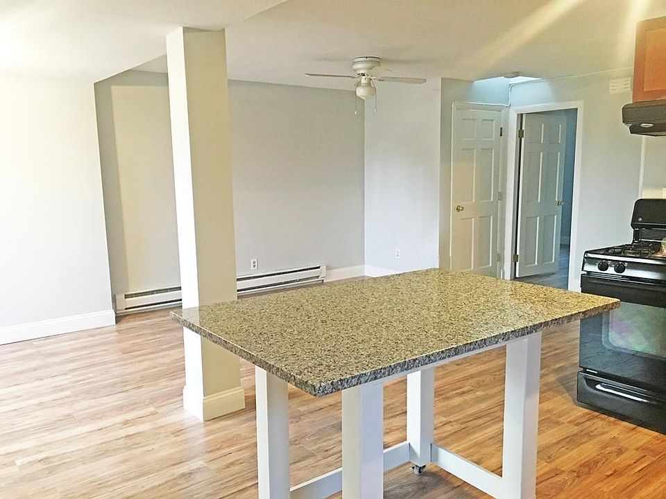AVAILABLE 9/1: Modern one bedroom plus office features open concept living room & eat-in kitchen with wide plank flooring, cherry cabinets, a closet, granite countertop, rolling island cart, under mount stainless sink, gas range, recessed lighting, a ceiling fan and a large picture window! The bathroom was renovated with a 36 inch vanity and mirror, dual flush toilet, tile flooring, fully tiled tub, wainscoting and chrome fixtures. Air conditioning, bonus room/office, private washer/dryer in the basement and outdoor space add to the value & appeal of this great apartment! Sorry, no pets! Gas (cooking) and electricity (efficient mini split system) usage paid by the tenant. First, last, security, broker fee, good credit and strong landlord references required for move-in. Less than a half mile walk to Orient Heights Station on the Blue Line, Starbucks, Constitution Beach & multiple restaurants including Renegades Pub! Very convenient to I-93, I-90, Rte 1A and Logan Airport!