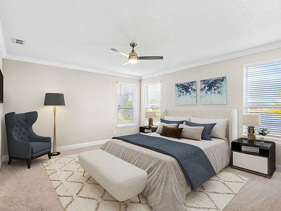 This home has it all, 5 bedrooms, 4 full baths, Quartz countertops, a gorgeous white tiled herringbone backsplash, a custom vertical shiplapped island, double oven and stainless steel appliances, a 3 car garage, separate laundry room, ceiling fans in every bedroom. A fantastic layout with most interaction on the 1st floor; 2 bedrooms and 1 bath near the front, a 3rd bedroom with a full bath off the living room,the Master Suite toward the rear of the house with a view of the lake, a breakfast nook, dining room, laundry room and 3 car garage round out the bottom floor. Upstairs is the 5th bedroom, an oversized walk-in closet and a full bathroom. This is ideal as a private office, separate studio or a guest suite. The location is ideal within Silverleaf and the A rated Schools of St. Johns County. Minutes from Costco, Bucc-ee's and perfectly placed to await a brand new Publix, 2 brand new hospitals, a new interstate access leading to both I95 & I10 among the many other incoming businesses of the community! By golf cart explore all of Silverleaf with dedicated golf cart paths throughout that lead to the main amenity center complete with tennis courts, pools, splash pads, dog parks and so much more!