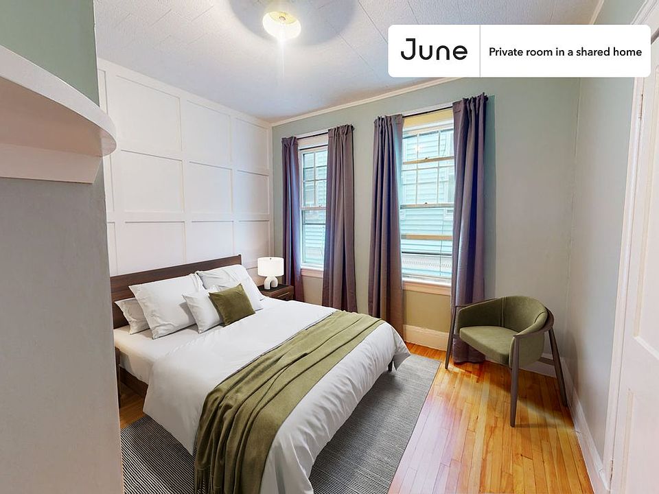This Queen room in Dorchester Center is available on a 12 month lease or a flexible short term (31 to 364 days) lease. You pick your custom start and end date. Monthly rent rate is determined by furnishing preference, move-in date and move-out date. Speak to a June representative for recommendations on the best stay duration for the lowest rate.