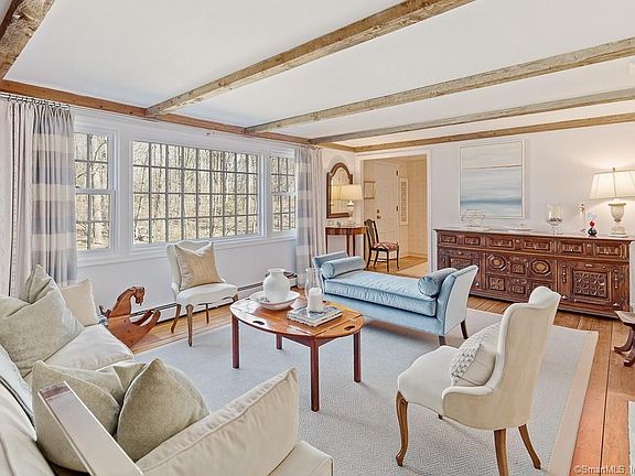 Round the bend and welcome to 61 Little Fox Lane, a Cornell colonial on 1.82 acres with a pond and waterfall as its idyllic centerpiece. This picturesque property is the family home of an interior designer that's been a labor of love for the owners since 1991. Perfect for the needs of today's growing family, the home has been expanded and updated to feature six bedrooms, four full baths, four fireplaces, and a back staircase that leads to the second floor primary bedroom suite with a fireplace. A private bedroom on the first floor with an adjacent full bath can be used as a bedroom or main office. The living room with fireplace and beamed ceiling overlooks a tranquil pond that is professionally landscaped. The updated kitchen features marble countertops, double oven, Wolf cooktop, Sub-Zero refrigerator and fireplace. The family room with beamed ceiling has a large gas fireplace, French doors, and built-in cabinets. The newly updated, large screened-in porch provides an outdoor respite for family gatherings. The home is equipped with a generator, recently installed new air conditioning system, and an irrigation system. The property has been maintained throughout the years by a professional landscaping company. Are you ready to make this special move-in ready property your own?