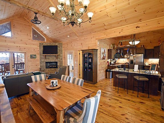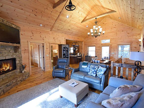 Excellently Appointed Fully Furnished Chalet, 2018 construction - Long range View. Convenient location between Blue Ridge and Blairsville. Excellent investment w/ Rental History. 4BR/3BA w/ custom cabinetry, Stainless appliances, Granite and Live Edge counter tops. Great room w/ Vaulted ceiling and T&G wood throughout. 2 Gas Log Fplcs. Vaulted ceiling in master suite. Slate tiled open shower. Marble Stone Bowl Sinks. Whole house Generator, on-demand hot water! 2 Car Garage w/ split for Heat/Air, Currently setup as a Game room. Circular Drive-through 2-car carport. Hewn wood floors on main & mosaic tile on bathroom floor lower level. Walnut countertops in bathrooms. Oscillating ceiling fans. Screened in View porch With vaulted ceiling and tiled floor. 2 open porches on the back of the home. Lower level w/ Den, wet bar, barn sliding doors. 6 person Hot tub and fire pit area.