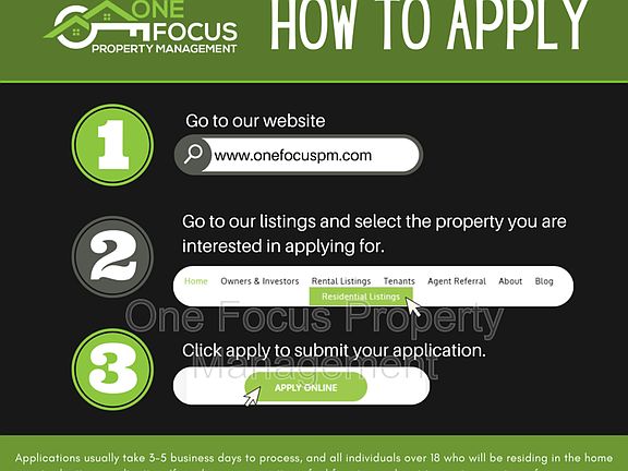 Do not submit any application for this home with or pay any fees or deposits to any party other than One Focus Property Management.