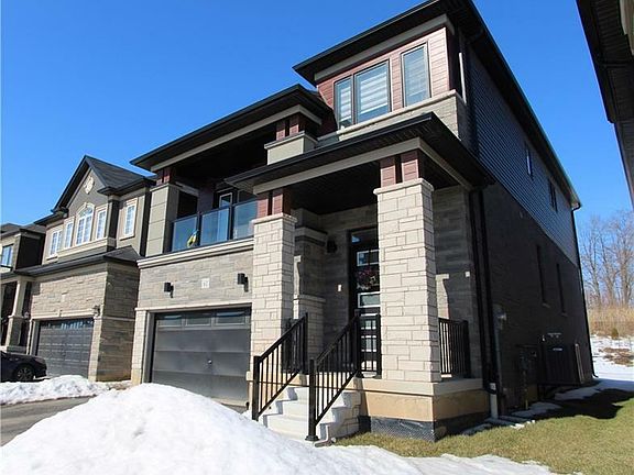 Welcome to this beautiful detached 4 bedrooms, 3 bathrooms home in a desirable neighbourhood (Nature's Grand) LIV Communities in Brantford. Situated on a ravine lot, this home offers a picturesque and serene backdrop for you to enjoy. The main floor boasts a luxurious 10-foot ceiling that adds a sense of grandeur and spaciousness to the living spaces along with 14 ft ceiling in the foyer. Step inside to discover a meticulously designed interior with countless structural upgrades that elevate the overall aesthetic and functionality of the home. From thoughtfully placed architectural details to premium finishes, no expense has been spared in making this residence truly extraordinary. One of the standout features of this property is the additional living area with a walk-out to a balcony. This area serves as a perfect private retreat, providing an ideal space to unwind. This home offers ample space for the entire family. The bedrooms are generously sized, creating comfortable and private sanctuaries for everyone. The bathrooms are elegantly designed, featuring modern fixtures and finishes. Whether you are entertaining guests or enjoying quiet family time, this property has been thoughtfully designed to accommodate your lifestyle. The open-concept layout merges the kitchen, dining, and living areas seamlessly, allowing for effortless interaction and creating an inviting atmosphere for gatherings. In summary, this ravine lot property is a rare find, offering stunning views, luxurious upgrades, and ample space for comfortable living. Approximately 100K of builder upgrades with the intentions of moving in. **LIST OF UPGRADES SHEET ATTACHED**. Deck will be installed by the builder. Close to river, parks, pond, trails. Close to Hwy 403, conservation & trails leading to beautiful scenic views & golf course.