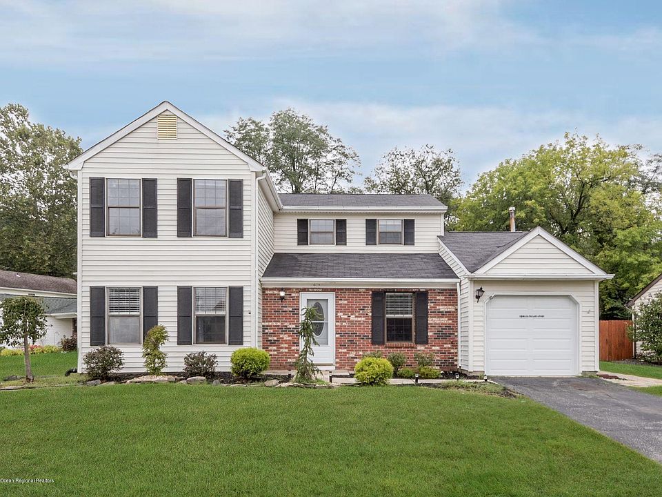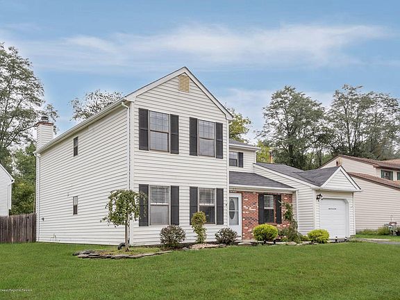 Located in desirable Moor's Landing, this updated center hall colonial is sure to impress. Enter this bright beautiful home with ceramic tile entry flowing into the updated eat in kitchen featuring maple cabinets, granite counter tops, and tumbled marble back splash. Snuggle up to the wood burning fireplace in the family room with views to the wooded back yard with beautiful paver patio, wood shed, and storage shed. The well lit dining room features crown molding and wainscoting. The master bedroom features two closets and a spacious master bathroom. The additonal bedrooms offer plenty of space and the second full bathroom is immaculate. The backyard offers a perfect space to entertain friends and family for a summer barbecue. Don't miss out on the chance to own this lovely home.