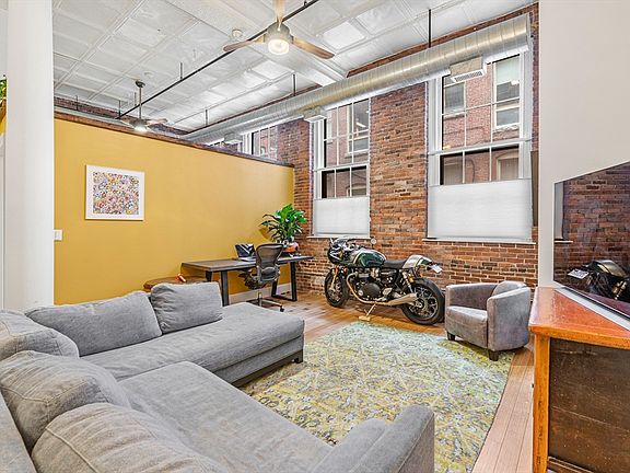 Embrace loft living in this expansive 1-bed plus study condo in the heart of downtown Lowell. Boasting 1,014 sq ft, the space impresses with 13-foot ceilings and 8 foot windows allowing plenty of natural light, amplifying its airy feel. Modern touches include 2-year-old Samsung kitchen appliances, a marble backsplash, and integrated smart home technology for ultimate convenience. Freshly updated and move-in ready, this unit offers basement storage and easy garage parking across the road for a small monthly fee. Steps from vibrant cafes, shops, and restaurants, it's perfect for those seeking a dynamic urban experience without sacrificing comfort.