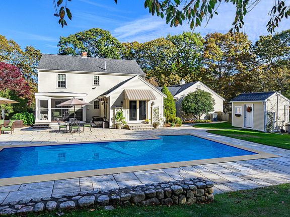 This stunning property in quaint Barnstable Village provides convenient access to a vibrant array of amenities & activities. Situated approximately 1 mile from sought-after dining, shopping, Hathaway's Pond, Millway Beach, and the harbor, this meticulously maintained home has been updated throughout, including custom cabinetry and finishes. The floor plan is perfect for entertaining, featuring a large gourmet kitchen that seamlessly connects to the family room, formal dining & living rooms. The 1st fl includes a mudroom and laundry area, along with a captivating screened-in porch that offers an ideal space to enjoy the serene outdoors. Upstairs, the luxurious primary bedroom boasts a walk-in closet w/ensuite bath. There are 2 other bedrooms and a full bath; however, the 4bed septic system would allow for more if desired. Additional space is currently available in the tastefully finished lower level, offering versatile space for hobbies and fitness. Outside, the grounds are beautifully landscaped, featuring an inviting pool and patio area, as well as a shed w/solar heat for enjoyable swimming. Central AC & generator.