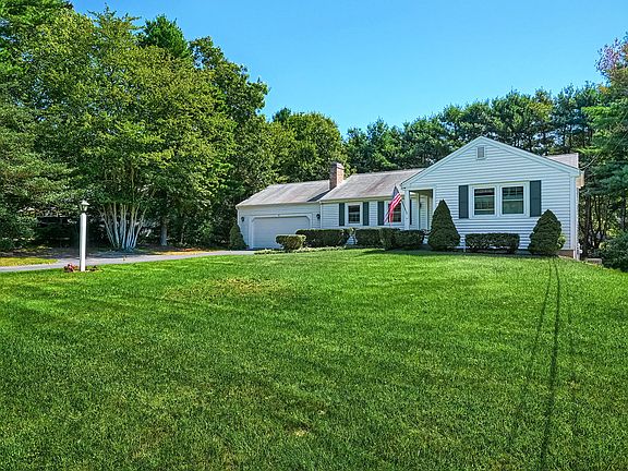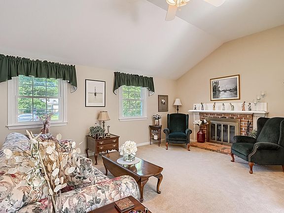 Move-in ready L-shaped ranch with 3 bedrooms, 2 baths, 1st floor laundry, plus 2 car garage, and 2 partly finished rooms in the walkout lower level. Cathedraled living room with fireplace, cathedraled kitchen/dining area with skylight and sliders to deck; gas heat, AC, and patio. Taxes may vary due to owner use of property; buyer should confirm.