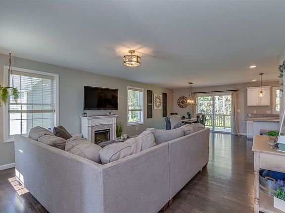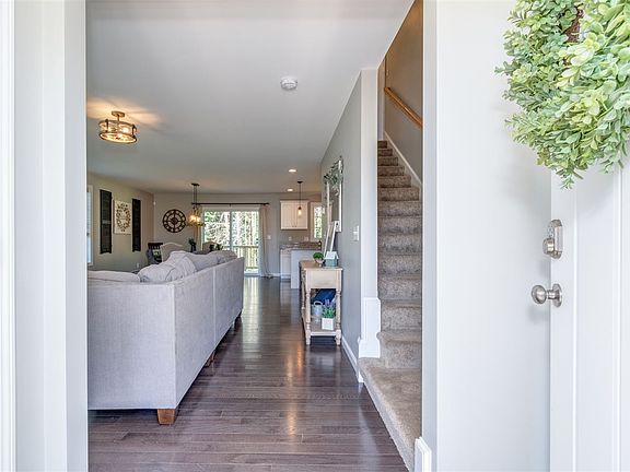 Step into this fresh, airy home and simply unpack. Located in a friendly neighborhood of new homes, this home has all the upgrades. Beginning in the open concept living room, grey oak flooring extends into the dining space, and then onto the expansive kitchen, which features granite counters, a large island, soft-close cabinets and stainless appliances. Off the dining area a sliding glass door leads to the deck and then to the level, low-maintenance yard abutting the woods. Upstairs the spacious bedrooms include the master suite with walk-in closet, and master bath with double sinks. In the guest bathroom is the 2nd floor laundry, and all bathrooms were upgraded with tile flooring, as well as soft-close vanities. The unfinished basement is your blank slate to customize to your liking. Too hot in the summer? Turn on the central air. Cold and snowy in the winter? Keep your vehicles dry in the 2-car garage. Need lots of storage? Plenty of closet space throughout. It doesn't get more turn-key than this!
