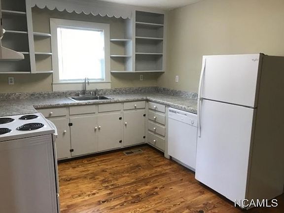 REMODELED HOME WITH LARGE LIVING ROOM, KITCHEN HAS NEW STOVE, DISHWASHER, AND REFRIGERATOR, THREE BEDROOMS, TWO BATH, WOODED FLOORS, NEW HEAT AND AIR, ALL ON A LEVEL LOT ABOUT .5 ACRE.