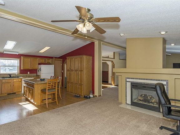 Small town, one level living! This 3 bedroom manufactured home is situated on a 1 acre lot in a quiet, peaceful neighborhood. Inside this bright and sunny home you'll find a large kitchen with tons of storage, formal living and dining rooms, a comfortable family room, a master suite with dual closets and vanities, a dedicated laundry room with cabinets for storage, 2 bedrooms, and a full bath. The breezeway connecting the home and garage is the perfect catch-all for all your necessities. Outside you'll enjoy a 3 stall heated garage, perfect for storage, a shop, a studio or whatever you dream! The level yard offers blueberry, raspberry, and strawberry bushes as well as apple and cherry trees. See this great home today!