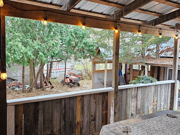 Turn-key! Stunning 3 bedroom 2 bath 2.5 story Victorian home with detached double car garage with a pushout toward the back for workshop area. Chocked full of many updates. Located in the lovely hamlet of Thamesville, close to the 401. Updates within last 3 years include new asphalt shingles on the house, metal roof on the garage, soffit and facia and front porch painted on house, most of the North Star windows new with fresh paint. New hardwood in wrap around porch. FYI fireplace in porch will be removed. New vinyl floor in entry way. New vinyl in upper level bathroom with new tub. New paint in living room, 2 bedrooms upstairs. Deck repair with new boards, most wiring in the house and garage. Newly built she-shed and woodworking shed for storage. Also added the porch on the back of the house. Great for morning coffee, or chilling in the evening.