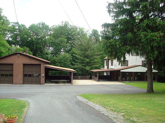 This spacious home has been well taken care of. The setting is beautiful - large portion of acreage is wooded with actual river access. Wide groomed path from house to river. Large garage was built for a Semi truck. Oil change pit - separate electric & large wood stove. Plus 2 carports AND a covered patio. Also, a covered front porch & rear covered balcony allows for several places to enjoy nature. Replacement windows. Shingle roof replaced in the 90's. 200 amp. Public sewer & well water. Brand new carpet in the 4 BR's. Updates in baths.