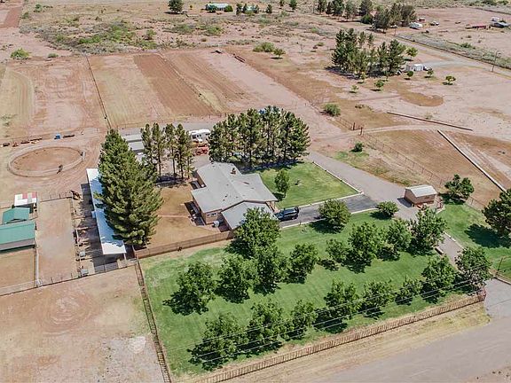 Pristine 3 bedroom, 2 bath, 2 car att 7.55 acre horse property located just a short distance from Horseman's Park. 2 working wells that service the home and all that includes 16 mature pecan trees. 20X20 metal hay barn with tack room, 110X12 metal horse shelter with 5 covered pens. 30X20 metal workshop with power and roll up door. 32X20 metal building with 3 roll up doors. Property includes a horse walker, round corral and steel corral panels. 2 steel piped fenced in pastures and possible arena locations. .