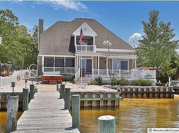FABULOUS PANORAMIC RIVERFRONT VIEWS w/ PIER DOCK! Enjoy life in this well appointed 4 Bdrm/2.5 BA custom colonial situated on the Metedeconk River. Open Flpln, Spacious Great Rm w/Cathedral Ceiling + gas F/P. Lovely Eat In Kitchen/granite/S/S w/Breakfast Nook overlooking water. 1st Fl. Master Suite. Loft opens to exter.upper deck/Screened Porch on 1st fl./2 Car Garage. Ext. feat: Trex Decking/Storage shed/Outside shower. 6'X100' Pier Dock. Relax in Hot Tub while enjoying daily sunsets.