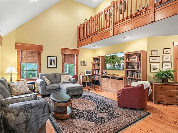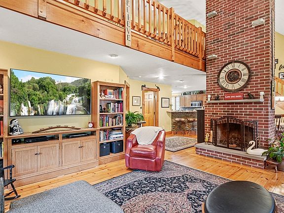 Located in a desirable cul-de-sac, this beautiful 3-bed, 2-bath home offers elegance, warmth, and thoughtful design throughout. The main level boasts an open floor plan with cathedral ceilings, knotty pine flooring, and recessed lighting. The fireplaced living room flows into a dining area and a kitchen with ceramic floors, wood breakfast bar, Quartz countertops, stainless appliances, and sliders to an expansive composite deck. The first-floor primary bedroom features hardwoods and deck access. A tiled 3/4 bath, mudroom with large closet, and laundry complete the main level. Upstairs offers two spacious bedrooms and a full bath. The walkout basement includes a workshop, generous storage, and access to a brick patio and spacious ¾-acre manicured lot with brick pathways. Additional highlights include a garage with loft storage, large paved driveway, and mature, elegant landscaping & irrigation system. Prime commuter location. Showings begin at OH 5/24 11-1pm