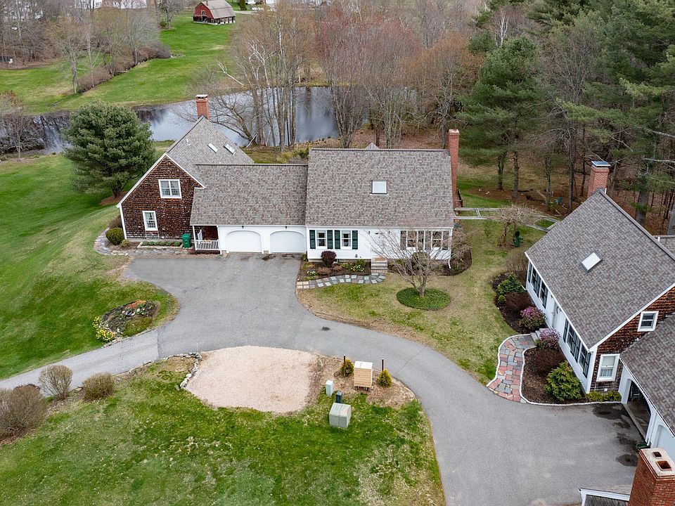 Quintessential Cape style condo in unique community with only 4 units. Beautiful facade with fine craftsmanship throughout this truly one of a kind property. Curb appeal abounds as you enter a long private drive, 5 common acres overlooking a picturesque pond view, an authentic New Hampshire setting. Floorplan is open and inviting with neutral tones for added appeal. Living room is highlighted by masonry fireplace with dramatic 2 story ceiling height in dining room, open to loft above. Kitchen is expansive, custom maple cabinetry and peninsula offers great entertainment flow. Warm wide pine flooring accents kitchen, living and dining rooms. French doors off main living to stunning sunroom with vaulted ceiling, walls of windows and serene waterviews. 1st floor bedroom, full bath and laundry are an added convenience. 2nd level loft is ideal bonus space. Master Suite is a generous size, with spacious bath, walk in closet and skylights filtering beautiful natural light. Outdoor space is a real showstopper, Homeowners contribute to maintaining the property's gorgeous mature landscape. Central air, newer roof, direct entry attached garage and scenic views enhance the value of this well appointed home. Showings begin at OPEN HOUSE Saturday April 30th, 2-4 and Sunday May 1st, Noon-2. MUST SEE THIS ONE!