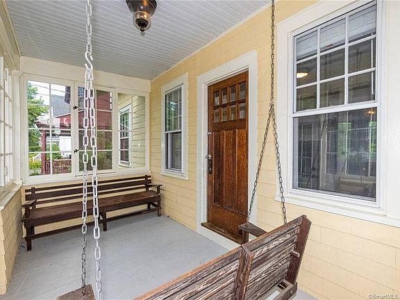 Charm and character are what you will find in this bungalow style home built in 1910 in Historic Old Wethersfield. The gorgeous hardwood floors, large moldings, and built in hutch are only some of the features that add a quaint feel to this home. The minute you walk up to the house you are greeted by an enclosed front porch with a classic porch swing and built in bench that welcomes you to sit down and relax after a long day. As you enter the home, the wood burning fireplace with stone surround will be where you will want to sit on cold winter evenings. The kitchen has granite counters and a ceramic tile floor and leads to the back porch and huge, level yard. The kitchen also has a door to the full basement and another door to the walk up attic. The dining room has the original built in china cabinet which is great for storage. There is another large room that can be used as an office or den. The two bedrooms have beautiful hardwood floors, and one bedrooms has a ceiling fan. The full bathroom has a ceramic tile floor and a stand alone soaking tub. The hardwood floors were refinished in 2018, a new water heater was installed in 2019, and the kitchen has a new ceramic tile floor in 2019. This home is in close proximity to Stillman Park, Wethersfield Cove, downtown "Old Wethersfield", highways, and shopping.