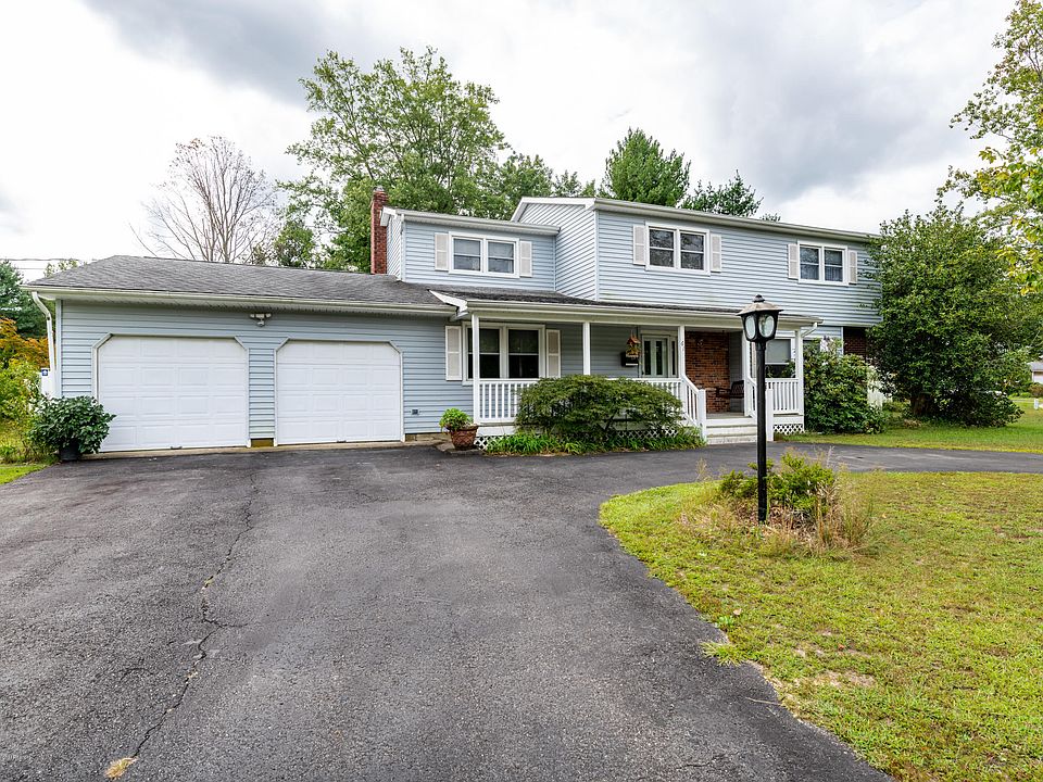 Desirable 5 bedroom 2.5 bath colonial with great curb appeal. Located on a corner lot. This home has a circular driveway and a lovely front porch for enjoying cool summer evenings. As you enter the home note the hardwood floors in the formal living room and dining room. The kitchen was updated with granite countertops, updated cabinets and a beautiful bay window with granite widow sill . Family room boasts a wood burning fireplace and French doors which open to a light and bright Florida room. Upstairs there are 5 bedrooms including a master with en suite full bath. Hardwood floors throughout the 2nd floor, other features include 2 zone heat and central air and a Timberline roof. Roof,siding and HVAC have been replaced in the last 10-12 yrs. Check out this lovely home and make it your own