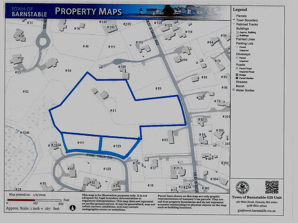 Opportunity Knocking!Rarely does a buildable parcel of land this size become available in the Charming Village of Centerville This private 5.86 Acre parcel combines one 4.88 Acre Lot fronting on Old Stage Road and two adjoining lots, measuring 0.49 Acres each, fronting on Pine Tree Drive. Stroll to the Centerville Public Library, Village Recreation Area, The 1856 Country Store, Four Seas Ice Cream and beautiful Craigville Beach on Nantucket Sound from this ideal location. Easy access to all that the Town of Barnstable has to offer.