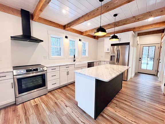 Welcome to this stunning new construction, thoughtfully designed for both style and efficiency. Nestled in a quiet, charming neighborhood, this home features beautifully detailed timber framing on the main level, adding warmth and character to the modern design. The exterior boasts architectural details with durable siding and trim, while energy-efficient insulation and air sealing provide year-round comfort. A two-car garage offers convenience and storage, and high-performance heat pumps ensure efficient heating in the winter and cooling in the summer. Inside, the kitchen shines with natural stone countertops, and the laundry is conveniently located on the same floor as the bedrooms. The primary bathroom features a spa-like rainfall shower, and a stylish half bath on the main floor adds a thoughtful touch for guests. A built-in Bluetooth speaker in the full bath enhances the modern feel of the home. With 200-amp electrical service and a drilled well providing excellent water quality, this home is both practical and luxurious. Beyond the beautiful interior, enjoy deeded access to Bonny Eagle Pond, where you can swim, kayak, fish, boat, and ice skate in the winter, making it a true four-season retreat. Located just 30 minutes from Portland and the ocean, and only 4 minutes from the nearest supermarket, this home offers the perfect balance of tranquility and convenience. If you're looking for a brand-new home that blends craftsmanship, comfort, and a prime location, this is the one.