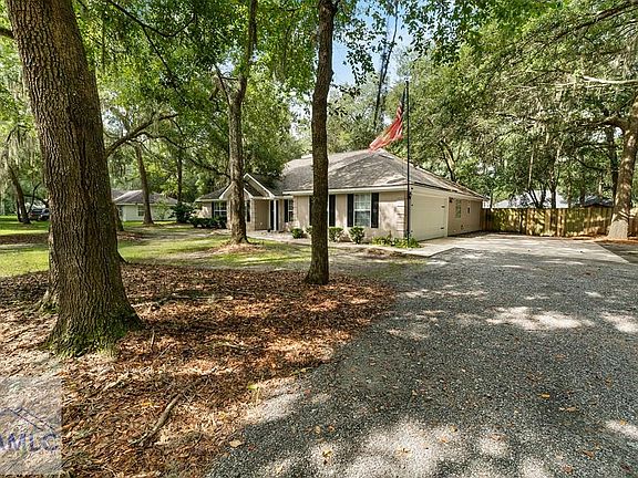 Quant, cozy, and spacious home on almost .5 acre lot with a fenced in back yard with beautiful oak trees providing plenty of shade on hot Georgia days. This home offers the best of both worlds, whether you are looking for a family home with four large bedrooms or to entertain friends in the air conditioned bar while waiting on the food to come off the grill. Located 4 minutes from I-95 and 20 minutes from Hinesville/Fort Stewart makes this a great hub location between Savannah and Hinesville. LVP flooring throughout the entire home! Open style floor plan flows seamlessly from the formal dinning room and galley style kitchen with stainless steel appliances and passthrough window overlooking the living room. Huge laundry room located just off the kitchen/dining. Master Bedroom features an ensuite bathroom with single vanity and tub/shower combo. 2 additional bedrooms and full bathroom. Shed located in the backyard. ALL APPLIANCES ARE INCLUDED! Great fishing at Lake Gale down the street!