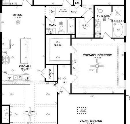 Simplistic and sensational, the "Kendrick" design offers fine details, all on one level with its attention to comfort and highly appealing use of space. Impressive great room with vaulted beamed ceiling and expansive space that offers a pleasant spot for family time or entertaining guests. Perfectly centered to the great room allowing open yet defined space, the kitchen is special in every way with granite island, custom cabinetry, and hardwood flooring. Separate primary suite allows privacy for the owner from the guests or other occupants of the house. Covered rear patio is great for an outdoor retreat. The two car garage completes the amenities to this all inclusive plan.