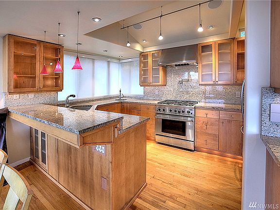 Fabulous unobstructed views from almost all rooms. Gleaming original hardwoods throughout this contemporary gem of a home in the desirable Prospect Hill neighborhood. Very private area. A real cooks kitchen with granite counter tops, 2 sinks, 6 burner gas cooktop with an under oven. 2nd electric oven, & loads more! LR with gas log fireplace glorious views of the Sound & Cascades. 3 bedrooms down w/views! full bath & 3/4 master w/walkin shower & built-in closets. Fam Rm w/views & gas log FP