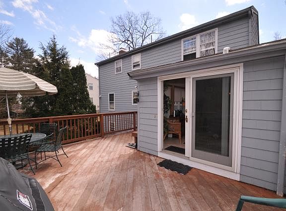 Move-in condition home with large rooms and great floor plan. Front-to-back cathedral ceiling family room with fireplace. Formal dining room. Oversized updated eat-in kitchen with extra pantry cabinet. 1st floor heated sun room with sliders to oversized deck overlooking beautiful back yard. Central air conditioning. 2 car garage. Front-to-back master bedroom. Whole house fan. Bonus rec room in basement.