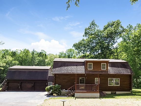 Come home to the peaceful surroundings of this log home on 14+ acres. 3 car attached garage with a 2nd story for storage plus a detached 1 car shed. Beautiful rear enclosed porch overlooks the pond and level yard. Over 600' of road frontage. Whole house fan, generator enabled. New 1250 gallon septic tank. This home is bordered to the rear by state forest. Close to major state roads and the airport is only 20 minutes away. 3 bedrooms and 2 full baths plus a wonderful field stone fireplace. Minutes away from Stancliff Cove Beach, Lake McDonough, Barkhamsted Reservoir, Farmington River, People's state forest and Ski Sundown. You may enjoy swimming, fishing, boating, kayaking, biking, hiking, camping and skiing.