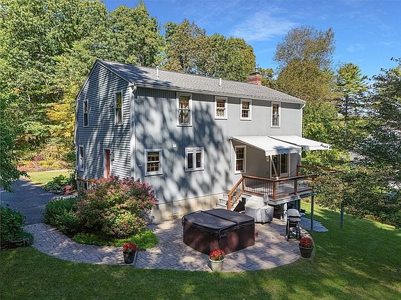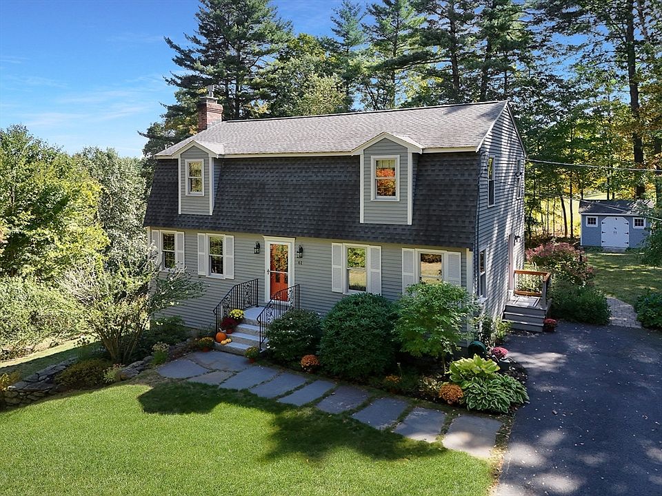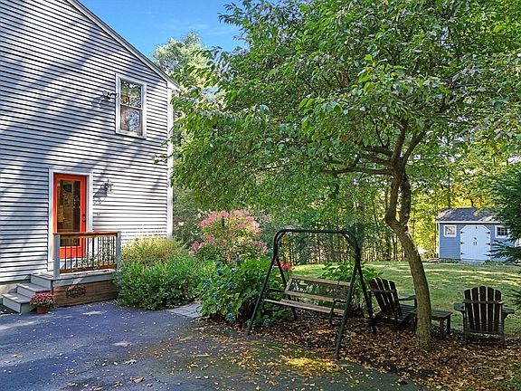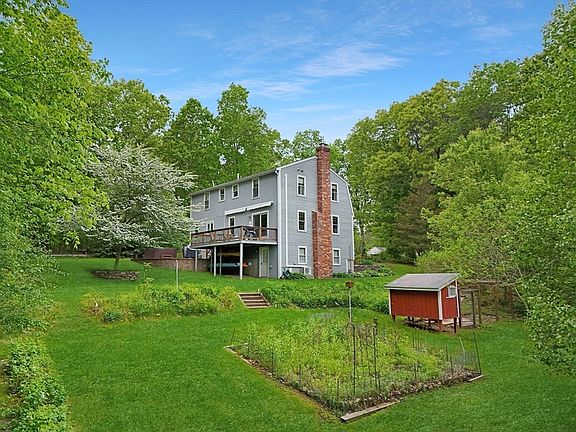 Welcome to your charming gambrel-style colonial! This home offers a perfect blend of classic style and modern comfort. The first floor boasts beautiful wide hickory floors, a kitchen with tiled floor, stainless steel appliances, half bath just down the hall and a living room with a gas fireplace and mini-split. A slider opens to a spacious deck with retractable awnings, overlooking a private backyard oasis with a stone patio, gardens, and a chicken coop. Upstairs you will find 3 bedrooms with beech hardwood floors throughout. The primary suite features a walk-in closet, mini-split and 3/4 bath with heated floor, perfect for those cooler days. The partially finished walkout basement with rubber flooring and it's own heat source is perfect for a home gym. Located a short stroll from the historic town center and The Bull Run, this home provides a lifestyle of convenience and tranquility. The roof is less than 10 years old, and mini-splits provide efficient central AC. Don't miss this one!