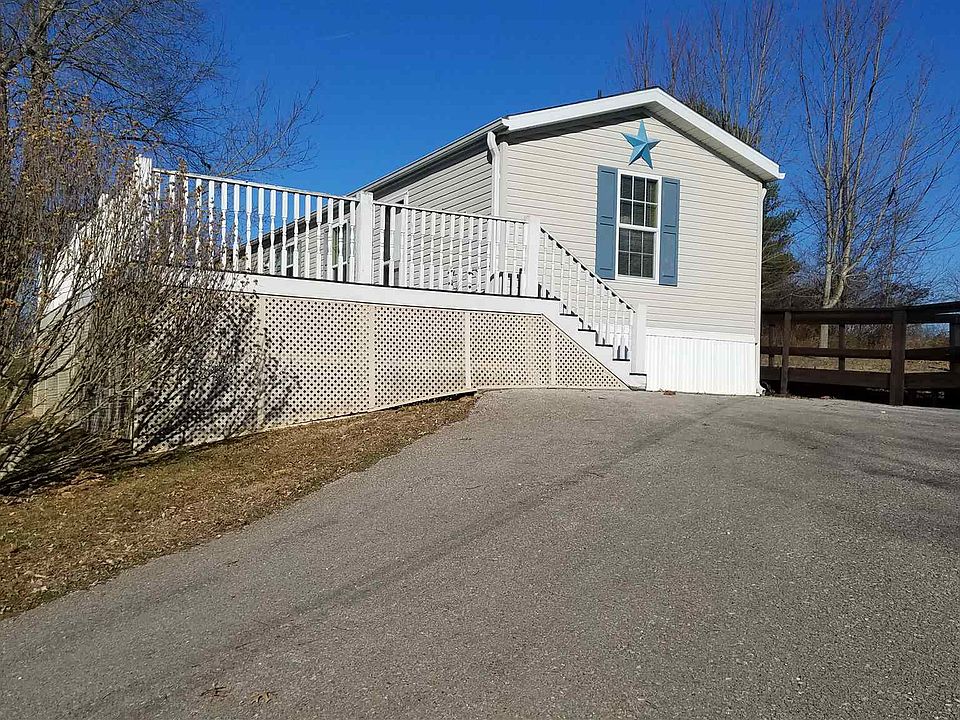 Paved drive leads to well-maintained 2 bedroom, 1 1/2 bath 2006 Dutchess mobile home with open concept living room and eat in kitchen w/ appliances. Electric furnace with central air. 16x26 front deck and rear covered 12x16 deck w/ wheelchair access. 2 out buildings.