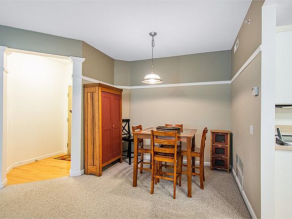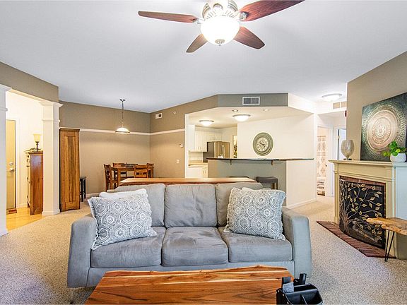 Welcome to your dream condo in the heart of Essex Junction! This charming two-bedroom, two-bathroom end-unit on the top floor offers a perfect blend of comfort and convenience. You'll immediately notice the 9-foot ceilings, the great flow from the dining area to the living room, and the gorgeous kitchen. This open concept creates an inviting and social atmosphere, making it easy to entertain. Take note of the beautiful electric fireplace for ambiance in the living room which is bathed in natural light. This room also provides easy access to a small balcony, creating a perfect spot for your morning coffee or evening relaxation. The well-equipped kitchen has stainless steel appliances and abundant storage space from the spacious reach-in pantry to ample cabinet space. The private primary bedroom with en suite bathroom and walk-in closet is filled with natural light. A second bedroom is right around the corner with another full bathroom just across the hallway. Highland Village is a secure building that includes a fully equipped exercise room and conference room. There is also one assigned parking space available in the garage in addition to one space outside. This condo is in a wonderful location close by to amenities, the Five Corners, Essex Junction Shopping Center, and Champlain Valley Exposition!