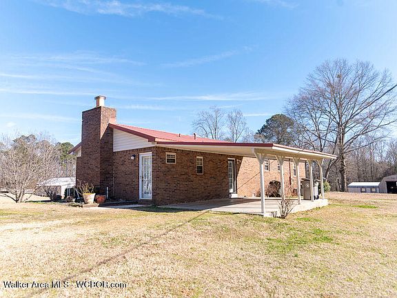 JASPER- 3 bedroom and 2 Bath brick home. Large Family Den with fireplace and Bathroom. Home recently had metal roof , and vinyl windows. Attached carport and 2 outbuildings. Flooring allowance will be allowed with acceptable offer.