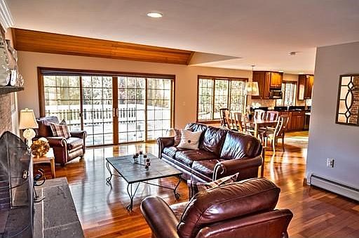 This spacious 3 Bedroom, 2 1/2 Bathroom New England Cape is located in a tranquil setting in Hatfield. This custom built home boasts an open floor plan that will make any gathering a delight. Meticulously maintained, the house features freshly custom painted walls in neutral shades, lush new carpeting on the second floor, large backyard, and a walkout basement with Goshen Stone walls. Come sit by the fire in a welcoming family room with an oversized fireplace and vaulted ceilings. The recently remodeled kitchen will inspire the inner chef with its extra tall cherry cabinets, granite countertops and large center island that includes a downdraft stove with a grill. Enjoy relaxing on two private decks overlooking scenic, wooded views. For holidays and candlelight dinners, the formal dining room works perfectly and opens up to a staircase and foyer. Built in sauna and wine storage! Easy access to all major highways. Close drive to Amherst and Northampton! "Love where you live!"