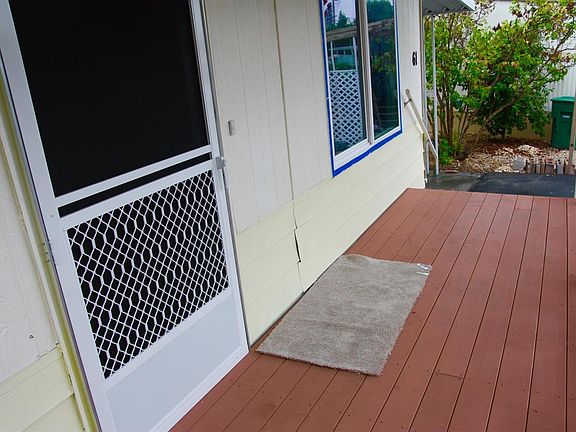 Picture yourself sitting on this lovely front deck with your hot morning coffee & paper! Lovely 2 bedroom/bath updated mobile home priced right! New carpets, updated kitchen and bath, new dual pane windows, fresh paint exterior and some interior rooms, newer kitchen stove, dishwasher, washer/dryer, refer sold with home. Master bath has step in shower, other one has shower over tub, new earthquake bracing. Come get this one before it is gone!