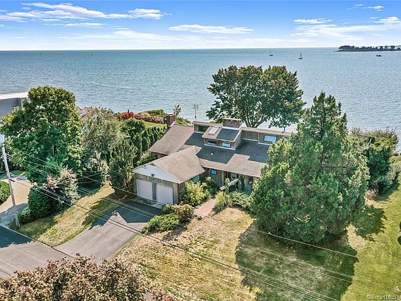 This spectacular property is truly a wonderland with full lot water frontage and 180 degree views of Long Island Sound, sunsets that rival Maine to the Keys. A spacious classic contemporary set on a bluff overlooking the sound with direct water access and southwest winds, views of Milford Harbor and Charles Island are included. Lovingly cared for home with updated kitchen, family room with cathedral ceilings and fireplace, formal living room and large dining room. Private master bedroom with bath on the second level. Three additional bedrooms, 1.5 baths and a laundry room on the main level. Walk out sliders to the wrap around deck, 2 car attached garage. Mature lovely landscaping surround the property Private beach association for swimming, kayaking, and neighborhood get togethers, there is always something to celebrate. Walking distance to picturesque Milford Green offering eateries and specialty shops, the 6th largest green in CT. Milford Marina offers transient slips, a great spot for boaters and a top notch Yacht Club. So much more to offer!!