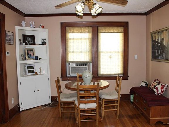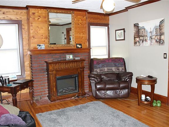 Well maintained with some old world charm like hardwood floors, natural trim & glass door knobs. Enclosed front porch with many windows, living room highlighted by decorative fireplace & hardwood floor , corner cabinet in dining room, ceiling fans, updated white kitchen with ceramic tile floor, slider from kitchen to deck and private partially fenced back yard. Roof approx 10-11 years, Rheem 90% gas furnace cleaned & inspected 7/2020 (approx 11 yrs.), skylights in upstairs bedroom, Some freshly painted interior. Full unfinished dry basement with laundry area and half bath. Some replacement windows also