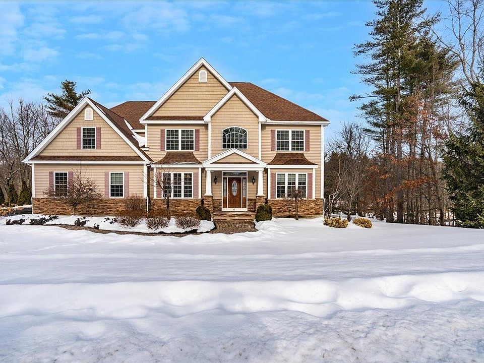 Exquisite custom-built home in sought-after Carriage Hill Estates, offering sidewalks and access to scenic walking trails at Heads Pond. Designed with meticulous detail, this home showcases hardwood floors, elegant tray ceilings & crown moldings throughout. Step into the impressive two-story foyer, which flows seamlessly into the open-concept family room & upscale kitchen—ideal for entertaining. The gourmet kitchen features high-end appliances, stylish finishes and a sunlit eat-in area. The spacious family room is highlighted by walls of windows, classic wainscoting, and a cozy gas fireplace. These elegant details extend into the first-floor home office, providing the perfect space for today’s work-from-home lifestyle. A separate formal dining room offers an inviting setting for large gatherings. Upstairs, the luxurious primary suite boasts a spa-like bath with a tiled shower, whirlpool tub, & two walk-in closets with custom built-ins. Two additional generously sized bedrooms share a well-appointed hall bath, while the fourth bedroom—currently used as an extended primary suite closet—can easily be converted back to a traditional bedroom. The finished lower level, with daylight windows, offers space for a recreation room, or gym. Even the garage is upgraded, featuring a propane heater, epoxy flooring, built-in storage, & an EV charging station. Beautifully landscaped with walkways, fencing & irrigation, this exceptional home blends luxury & comfort in a convenient location.