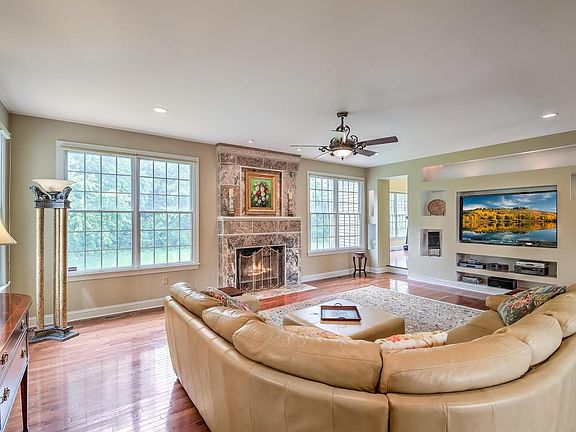 Tranquility awaits when you enter this 4991 sf foot home at the end of a cul-de -sac w 3 Car garage side entry. Gourmet kitchen w/stainless appliances, granite counter, 42'' cabinets, HW floors. DR, LR, Kitchen, breakfast RM, Family Room, Great Rm,Conservatory , Study and Sunroom & 2 half baths all on the first floor. MB with His & Her closets, full bath & sitting room; 3 additional bedrooms one w/private bath and the other 2 with Jack and Jill bath. Decorative molding, front and back staircase, tray ceiling, beautiful light fixtures, recessed lights and ceiling fan. Professionally landscaped w/ UG sprinklers. Stoned wood burning fireplace and built in for the 70'' TV are great accents for the sunken FR.