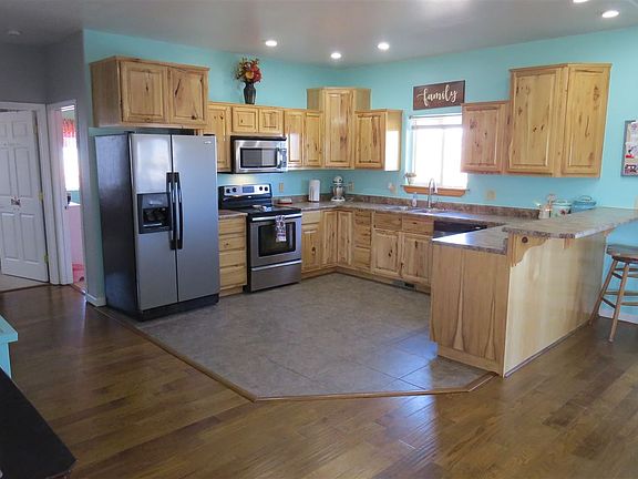 This is like a new 1 level home on acreage with many new upgrades you have been waiting for! Inside there is a large open floor plan with vaulted ceilings, newly installed engineered laminate hardwood floors, knotty hickory cabinets with stainless steel appliances, over sized bedrooms with 9' ceilings and a HUGE master suite with a vaulted ceiling and double walk in closets. There is also Natural Gas heat with central air conditioning, which is a rare find in a country property.