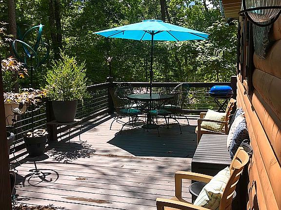 Living in this nearly-new cabin is like living in a campground! Mountains, trees, and wildlife abound all around you. It is situated on an approximately .75 acre lot on a rise which makes for great drainage. With a square footage of 1008’, the cabin has soaring cathedral ceilings, a large screen room, and a huge 12’ by 40’ front high deck built in 2022. It most definitely lives large! Outside is an oversized carport with an 8 by 8 storage shed toward the rear. Crawl space storage is available under the house. The cabin features five ceiling fans, central heat and air, a gas logs stone fireplace in the great room, 2 full baths, 2 nice-sized closets, a W/D closet, and luxury vinyl floors. All appliances remain. The home is sold partially furnished. The kitchen has a southwestern talaverra tile backsplash and new blue glass pendant lights suspended over the large island. All countertops throughout the cabin are granite. A stone fire pit awaits you outside. Buyers agents welcomed for 2% commission. 423-994-8777 or 423-984-8297