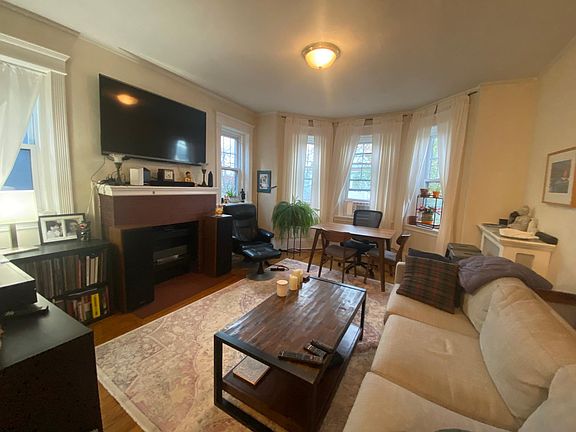 Come stay at Chateau Din!! Bright & spacious 2 bed/1 bath apartment in Allston. Beautiful detail with wood doors and floors. High ceilings, and many windows throughout, with open living/dining area with decorative fireplace. Fully equipped kitchen -- dishwasher, microwave & gas cooking - opens to living area for more light. Wall mounted large TV included in rent. 2 equal sized bedrooms with nice closet space in each and throughout the unit. Heat & hot water are included in the rent. Front bedroom opens onto a shared balcony - only one in the building. Laundry in building. One parking space included. Very close to many shops, restaurants & transportation as well as not far from universities. Available for February 1. Contact today for a showing. 24 hours required for showings. Terms are for one year (although it could be until Aug 31, 2024). Available February 1, 2023. Heat, hot water & water are included in the rent. All other utilities are tenant's responsibility. First month, one month security deposit, and one month broker fee are required. No smoking building. No additional storage in building. Pets are upon Landlord approval. One off-street parking space included.