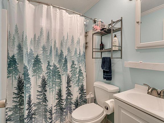 The three bedrooms offer comfortable accommodations, each thoughtfully designed with ample closet space and plush carpeting for added comfort. The shared bathroom has been beautifully updated, boasting modern fixtures and a soothing color palette, creating a spa-like retreat.