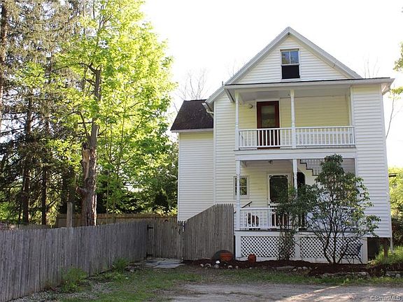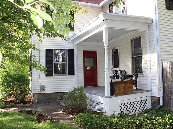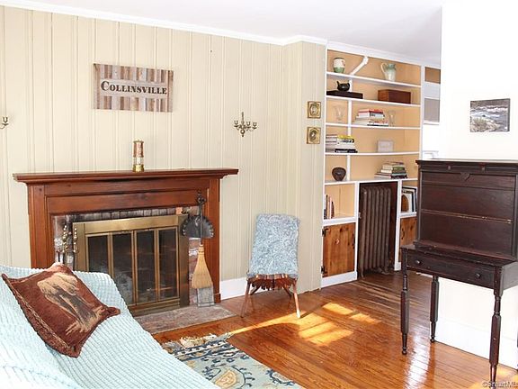 Charming light-filled 3 bedroom, 2 bath colonial home located across from the Farmington River and within walking distance to the bike trails, historic downtown Collinsville, and Nepaug Reservoir. The home was well built by an employee of the Axe Factory in Collinsville using granite stone for the foundation. The kitchen offers a large bay window overlooking the side yard. The laundry room and 1st floor bathroom are conveniently located directly off of the kitchen. The spacious living room (fireplace), dining room and library (built-in shelves) provide plenty of natural light throughout the day from the abundance of windows. Upstairs are 3 bedrooms with a 4th large room being used as an office. The 2nd full bathroom is located upstairs. There is a two story back porch which provides a nice sitting area. Great place to raise your own hens! Property comes with a hen house and garden shed. Detached garage was made from wood salvaged from a local barn in the area. Tranquil setting throughout the property with an outdoor garden and patio area. The property offers privacy from neighbors, access to a great school district, convenience to shopping (route 44), the local library, and Ski Sundown. Great place to call home! Come take a look!